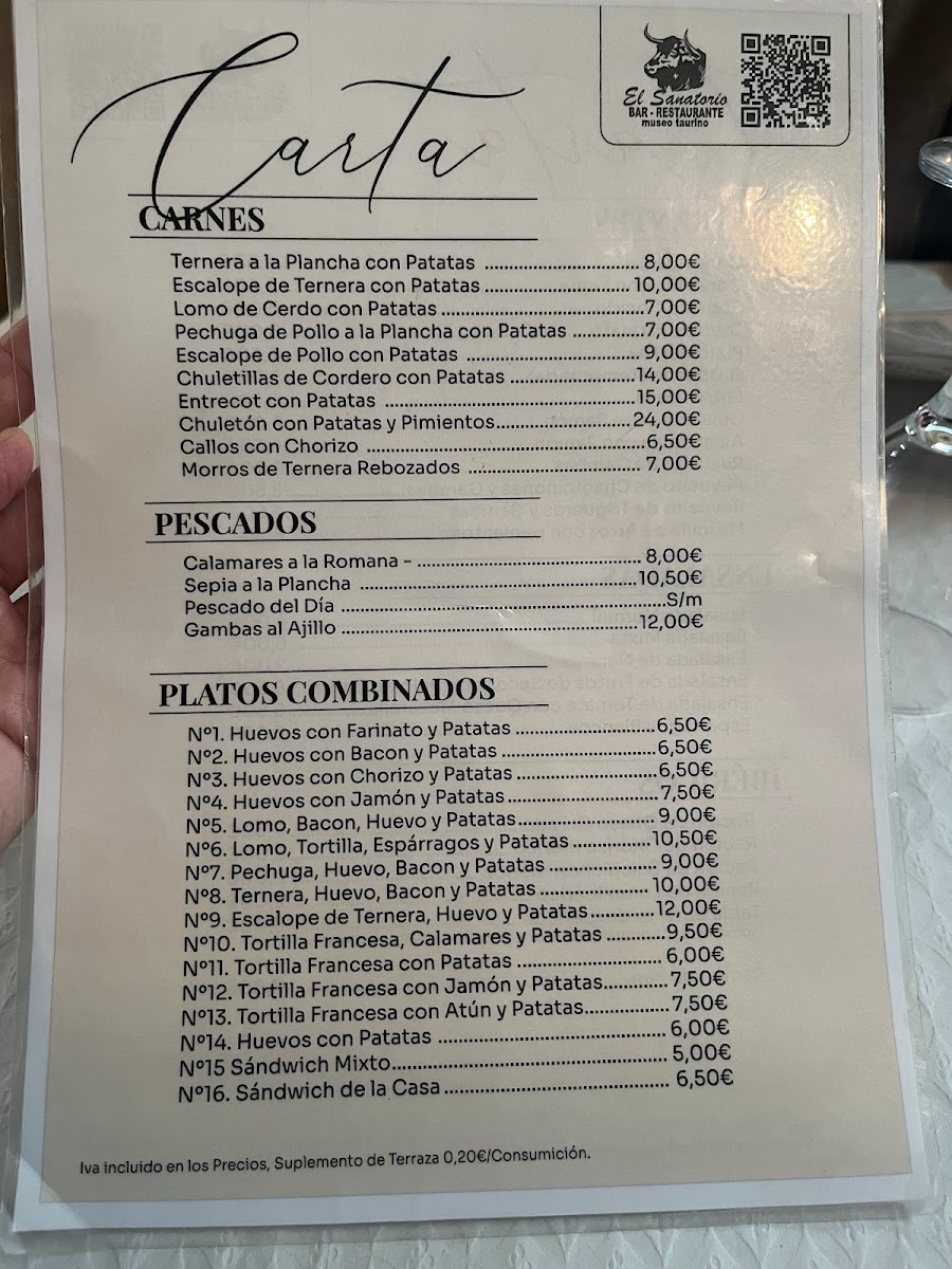 - Seafood and Grilled Items: Sepia a la plancha (grilled cuttlefish) is included among the options.