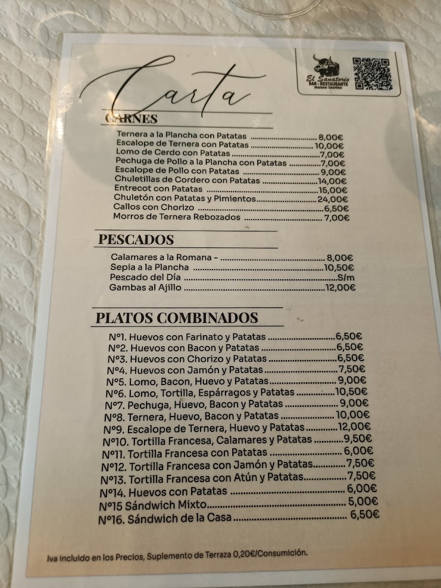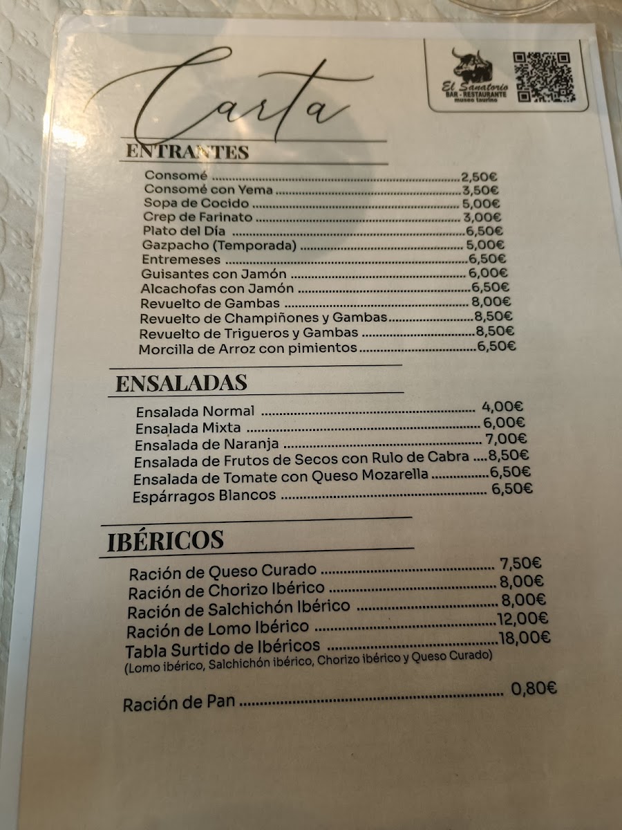 The menu at Bar El Sanatorio features a variety of traditional Spanish dishes and bar-style offerings suitable for different meal occasions, including lunch and dinner. Visitors can expect a range of appetizers, main courses, and desserts that represent local culinary specialties.